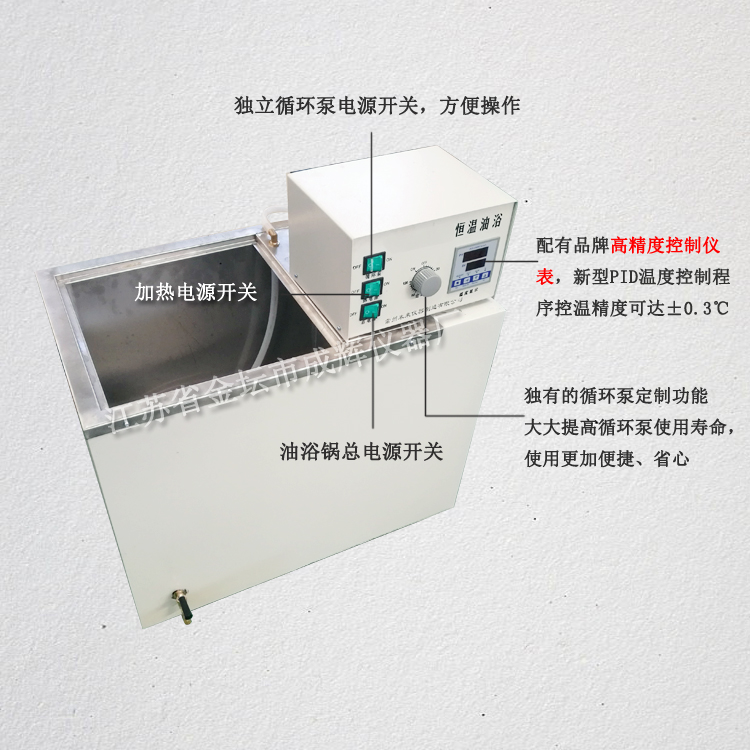 本产品为水槽式,油槽用不锈钢制作,机箱用优质冷轧钢板喷塑精心制作而成,采用优质高温油泵作为循环动力,解决了油温不匀的弊病,控温部分间隙加热,功率可调,等电子技术,以数字直接显示锅内实际温度,控温精度高,实际控温精度可达±0.5℃,本系列产品具有:美观、耐腐蚀、控温稳定、节能实用、维修方便、使用寿命长等特点。